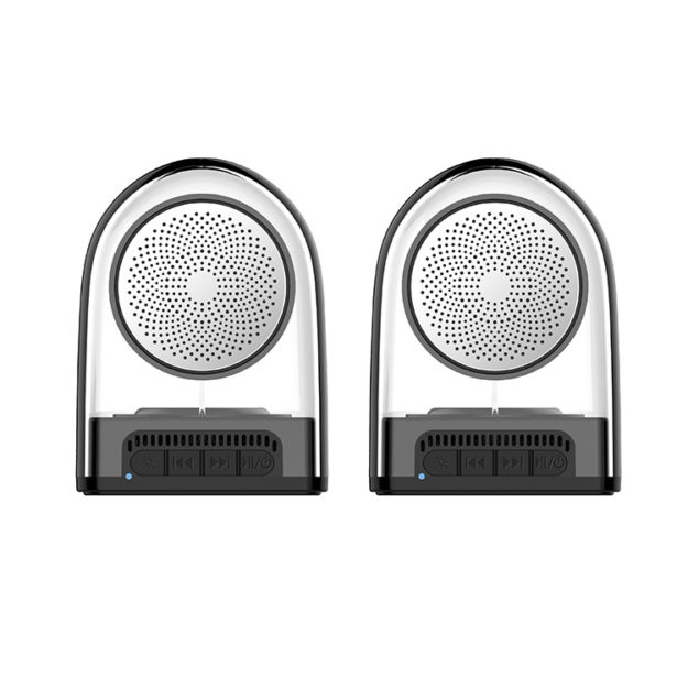 Bluetooth profile: V5.0 RF distance: 10M Charging voltage/current: DC 5V Battery capacity: 400mAh Play time: 4-5H Charging time: about 2H Power: 3W*2 Material: ABS+PC Product Size: 68*62*86mm Product Weight:337.5g